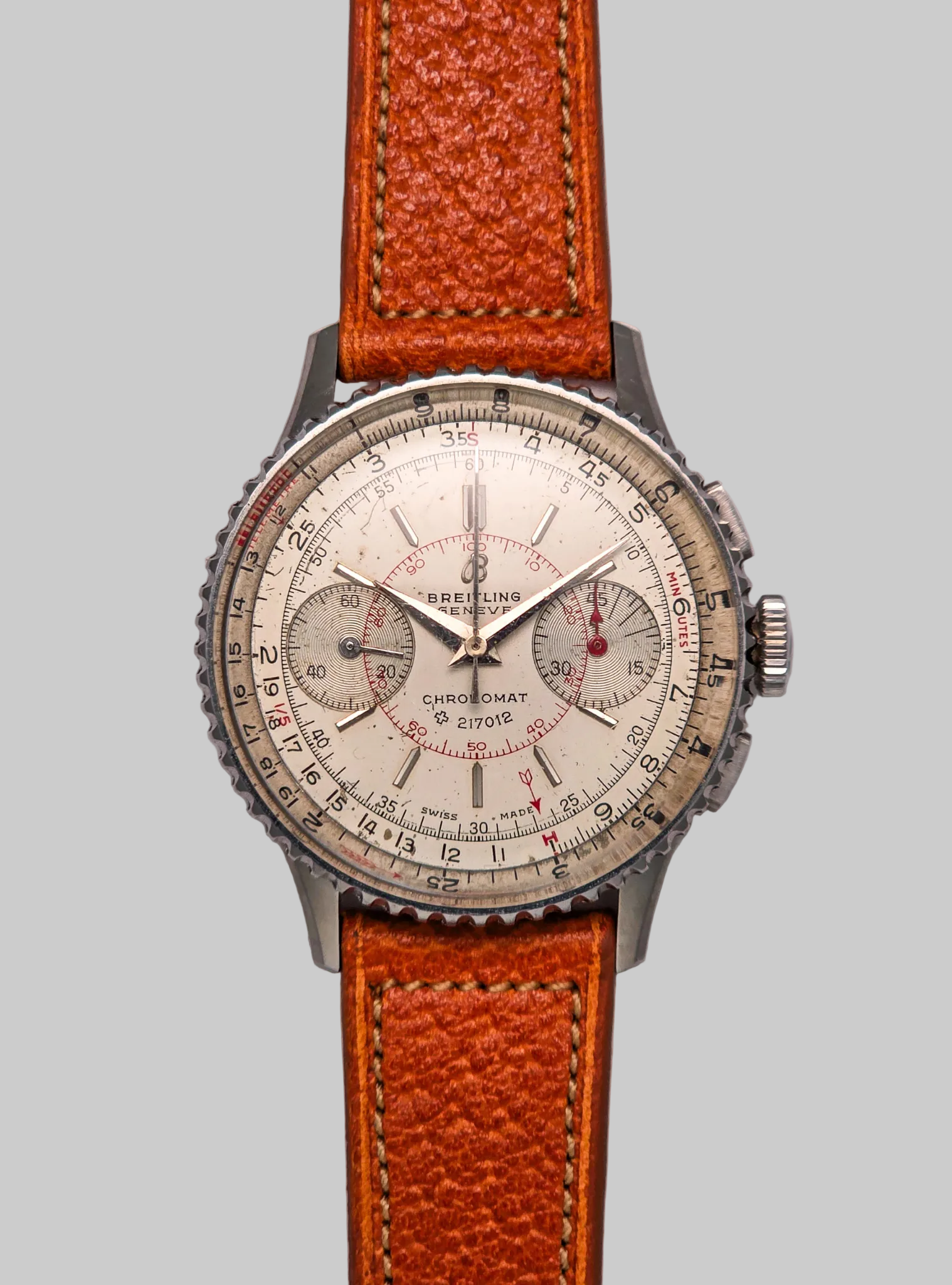 Breitling Chronomat : uno strumento del dopoguerra, non un cronografo elegante. Lanciato nel 1942 , il Chronomat segnò il passaggio di Breitling dall'aviazione pura alla matematica applicata al polso. La sua lunetta brevettata con regolo calcolatore non era un semplice ornamento: era uno strumento di lavoro per ingegneri, piloti e tecnici che dovevano calcolare velocità, consumo di carburante e conversioni in tempo reale. Nel 1945, il Chronomat si era evoluto in un cronografo compatto e altamente leggibile, caratterizzato da equilibrio e funzionalità, alimentato da uno dei grandi calibri dell'epoca.