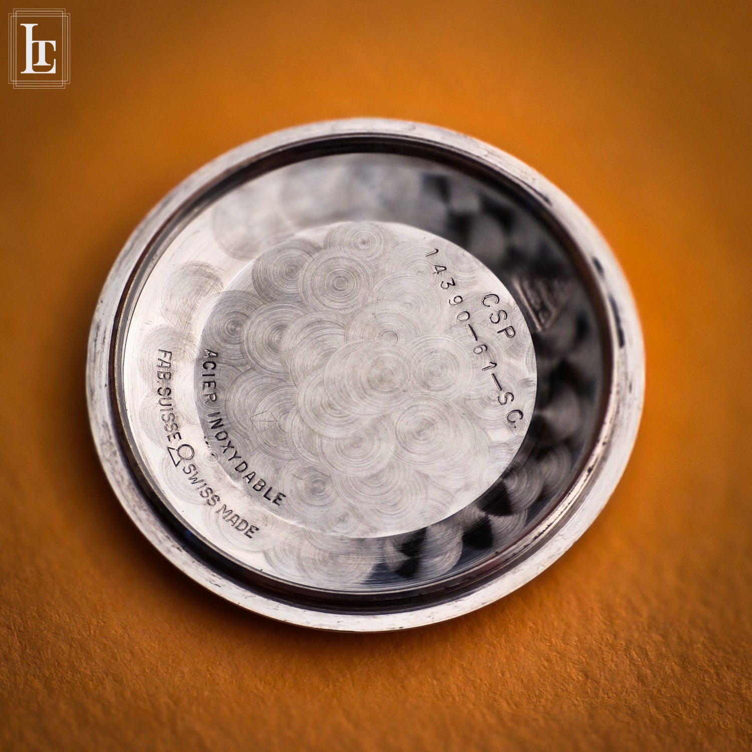Questo Omega Seamaster Ref. 14390-61-SC del 1961 , con movimento numero 18.xxx.xxx, è un esempio perfetto di quell'epoca d'oro. È dotato del calibro 285 a carica manuale , completamente revisionato e in grado di garantire prestazioni eccellenti. Il quadrante conserva il suo fascino originale con indici applicati, lancette dauphine, un reticolo pulito e il classico logo Omega vintage. La calda patina, sviluppatasi con delicatezza nel tempo, gli conferisce quell'autenticità e quel carattere inconfondibili che i collezionisti apprezzano.