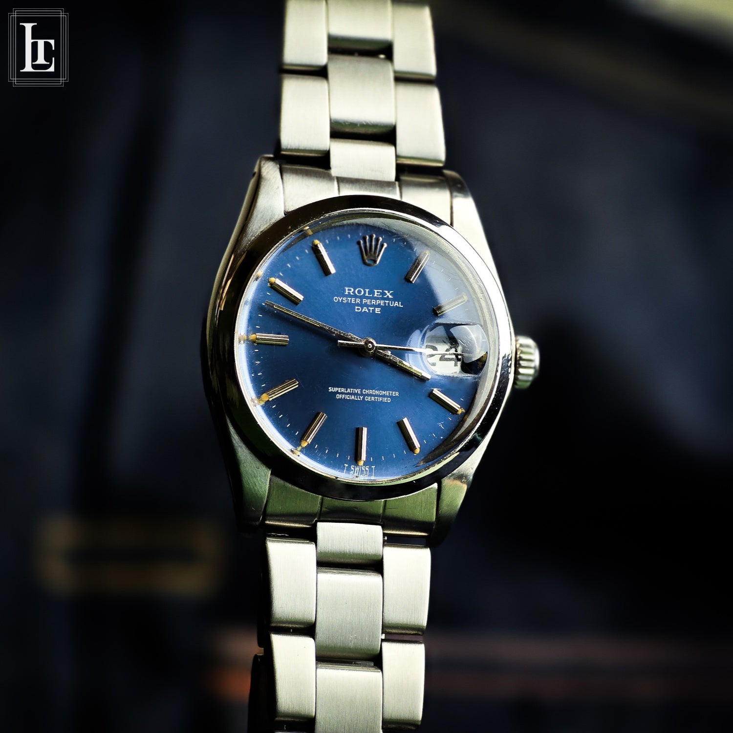 Questo esemplare presenta una cassa Oyster in acciaio inossidabile da 34 mm , nota per il suo robusto design impermeabile e le proporzioni equilibrate. Il quadrante blu soleil offre un'estetica sorprendente ma sobria, completata da indici a bastone applicati e dalla caratteristica lente d'ingrandimento Cyclope sopra la data a ore 3. L'orologio è alimentato dall'affidabile calibro automatico Rolex 1570 , rinomato per la sua precisione e durata, dotato di secondi con arresto per una regolazione precisa dell'ora.