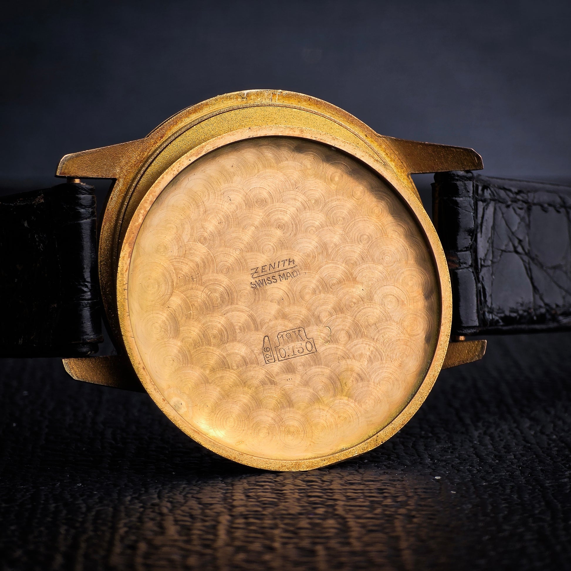 Al suo interno batte il calibro Zenith 126 a carica manuale , parte della celebre serie 120 di movimenti di manifattura, ammirati per il loro profilo sottile, l'affidabilità e le finiture di pregio. Il numero di serie 4.5xx.xxx su cassa in oro rosa 18k data l'orologio approssimativamente al 1962-1964, un periodo in cui Zenith era all'apice della sua maestria artigianale, poco prima della rivoluzione di El Primero. Il quadrante argentato con finitura soleil, indici a bastone applicati in oro e piccolo quadrante dei secondi a ore 6, sfoggia una raffinatezza pura e sobria.