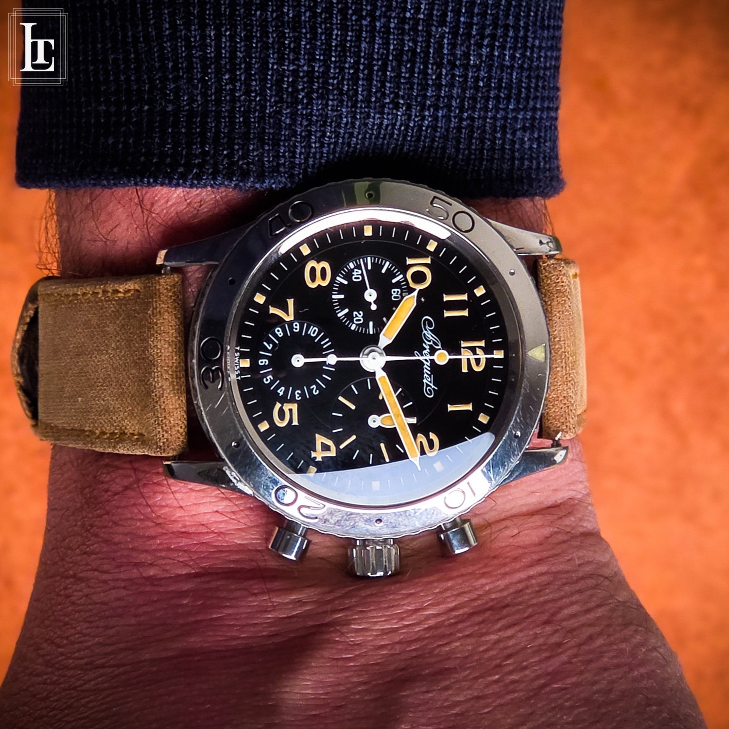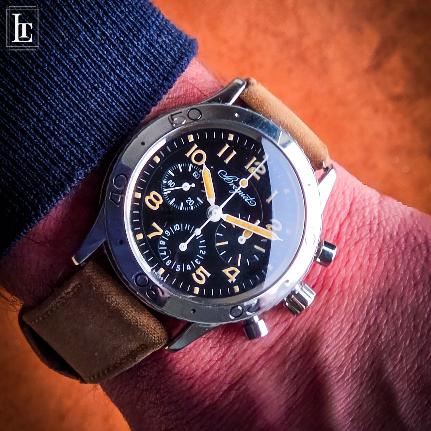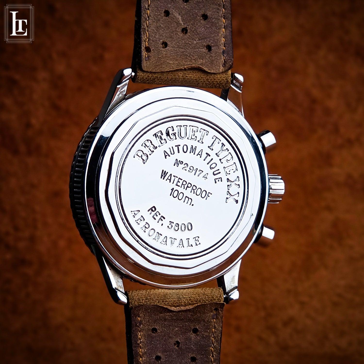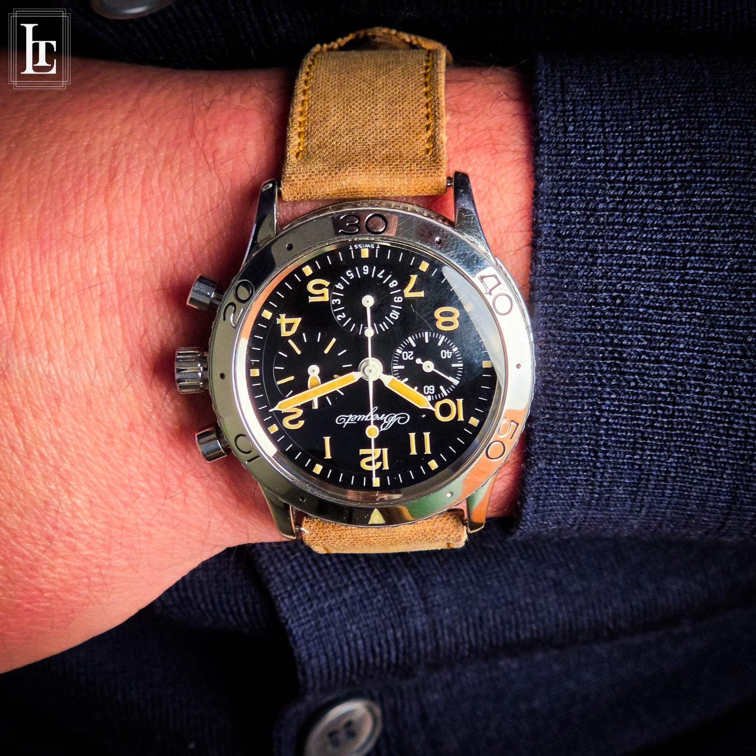 The Type XX Aeronavale Ref. 3800 SN 29xxx is a modern interpretation of the iconicFrench military pilot chronograph first developed in the 1950s. Designed for professional aviators, it combines functionality with timeless style. This example features a tritium dial, offering authentic vintage luminescence and a rich patina that collectors highly value. The watch is powered by a reliable automatic flyback chronograph movement, with a clean, legible layout optimized for in-flight readability. Its stainless steel case and rotating bezel maintain the classic Type XX aesthetic, while the original design cues—such as the lumed hands and Arabic numerals—honor the model’s aviation heritage. Full service history and excellent condition make this piece both a functional tool and a collector’s item, embodying the enduring legacy of Breguet’s pilot watches.