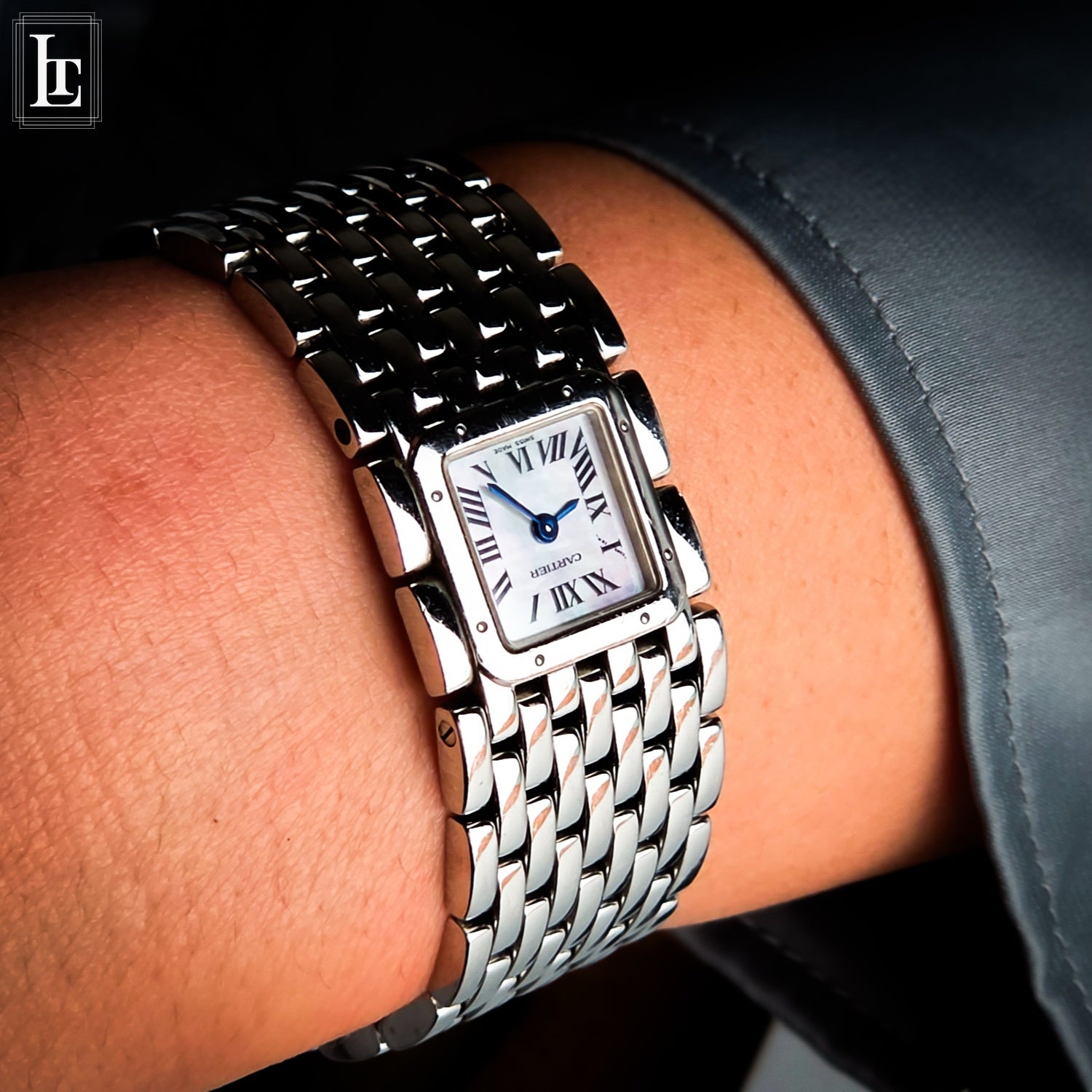Paired with the polished steel case and the iconic blue cabochon crown, the watch embodies the quiet luxury for which Cartier is celebrated. It is not a piece that seeks attention through excess, but through proportion, balance, and timeless design.