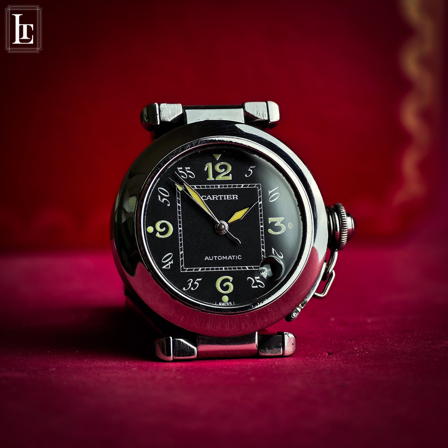 The Cartier Pasha ref. 2324 is a striking example of late-20th-century watch design, often linked to the creative vision of Gérald Genta. It perfectly captures Cartier’s ability to merge bold architecture with refined elegance, resulting in a watch that is instantly recognizable and rich in personality.