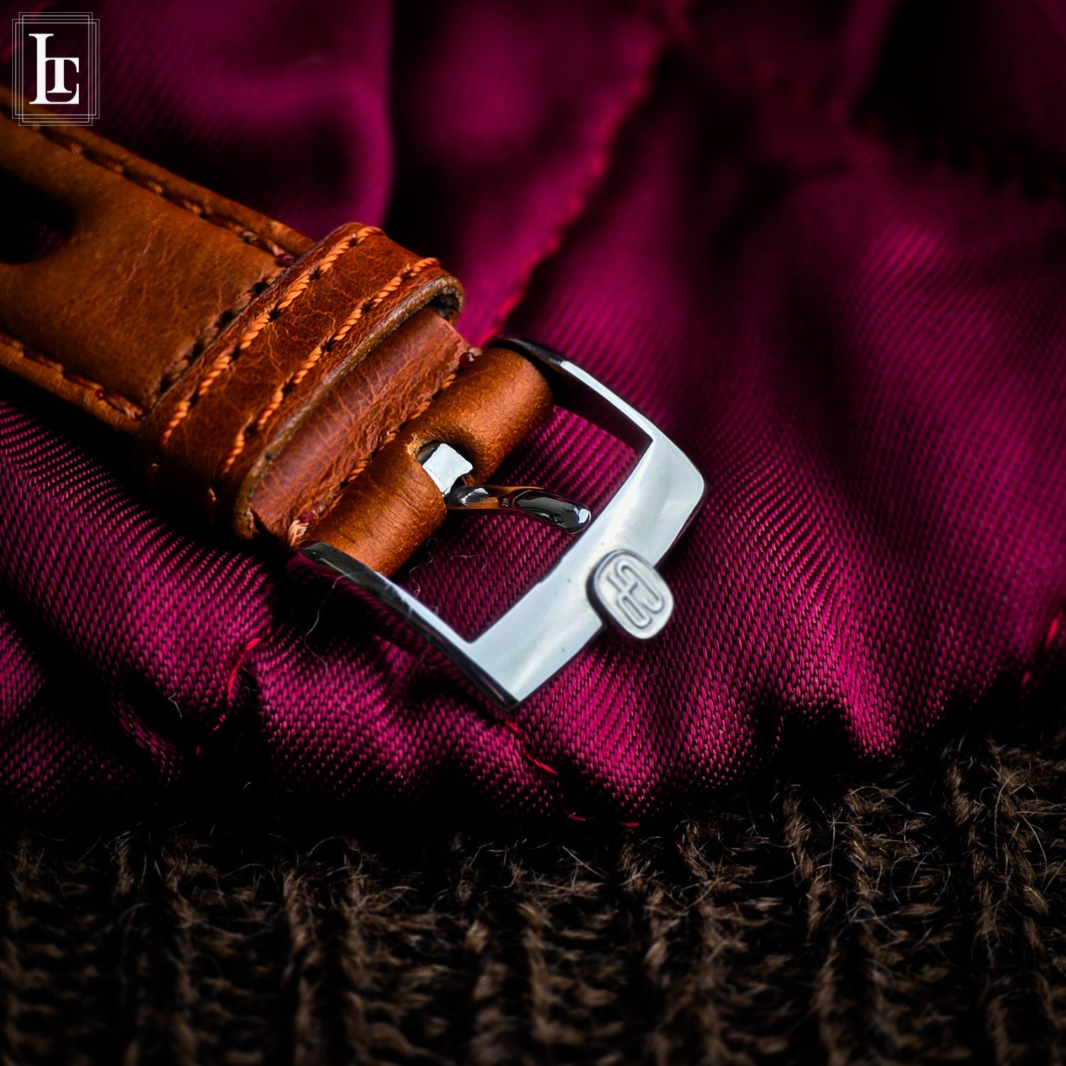 This example is fitted with a vintage rally-style leather strap in natural tan color, perfectly in tune with the sporting yet elegant character of the watch, and completed by its original Girard-Perregaux signed buckle — a detail that adds both coherence and collectability.