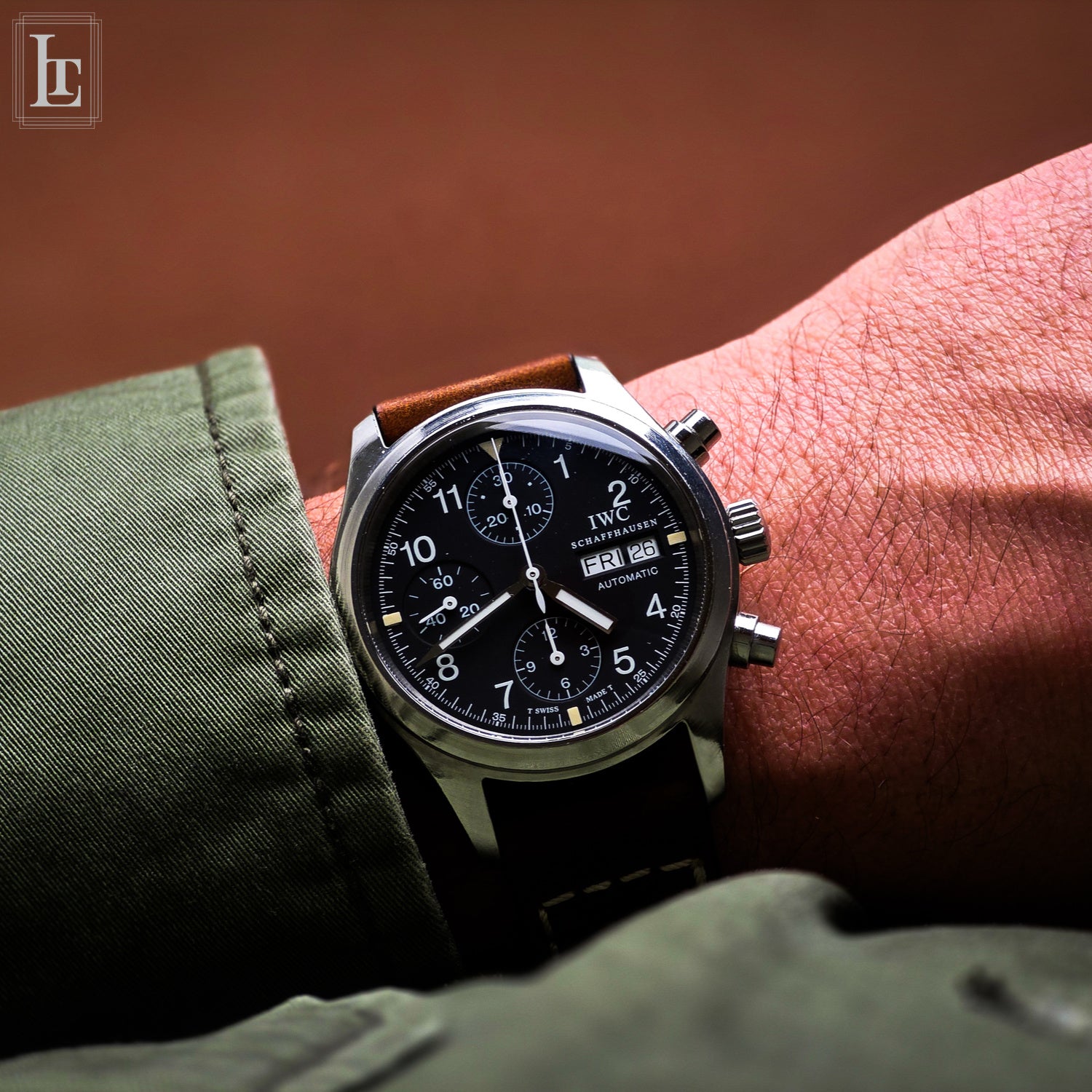 This IWC, Reference 3706, is one of our favorite Neo-Vintage sleepers. Combining the traditional function-forward elements of pilot's watch design with a sensibly sized 39mm case, robust automatic movement, Tritium luminous indices and hands, the 3706 was born a classic when it was introduced in 1994. This particular example is in excellent condition throughout with a strong case, English Day/Date calendar, and mouth watering patina to its luminous elements.