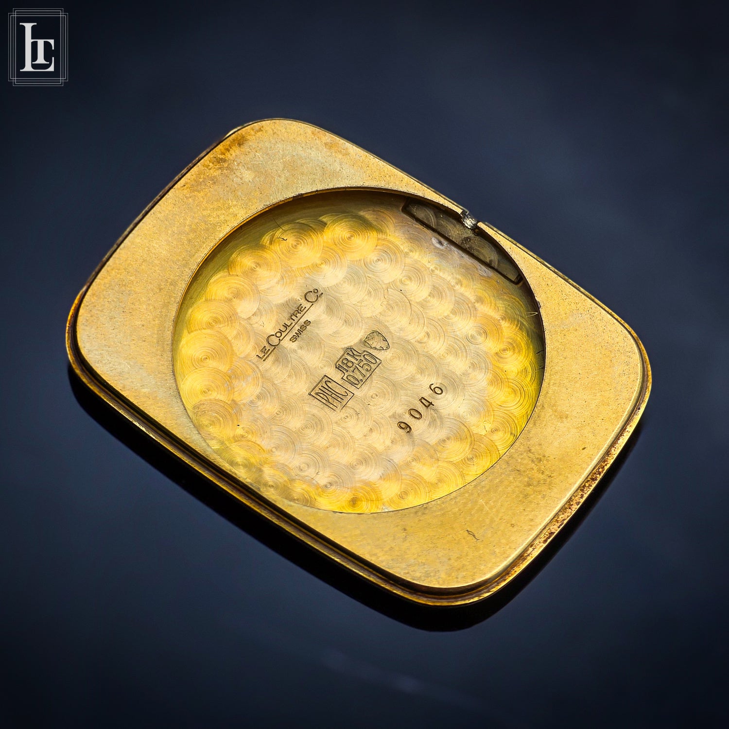 This example is in near mint condition, preserved in remarkable shape. It comes fitted with a Louisiana black alligator strap and an original yellow gold plated JLC buckle.