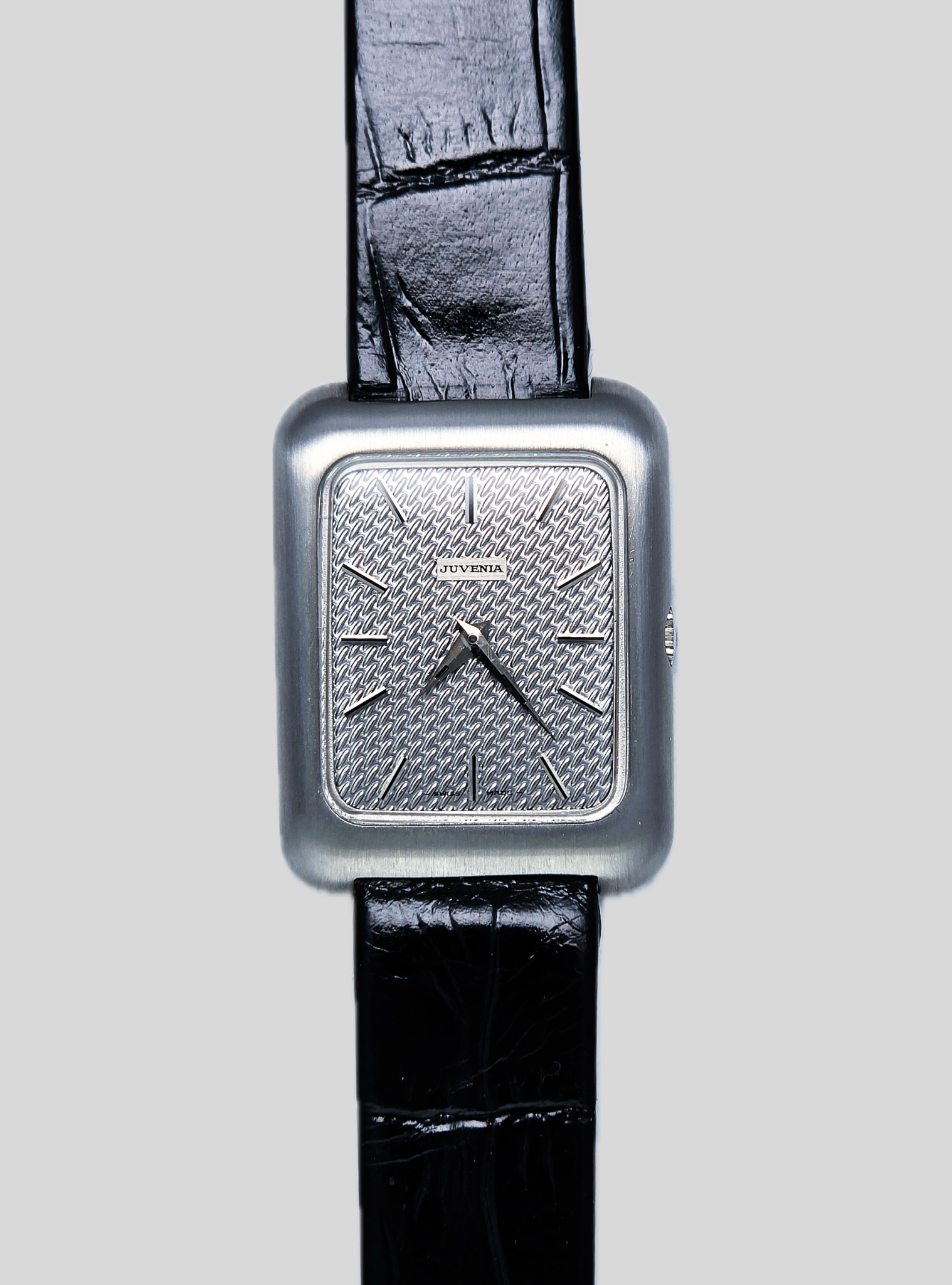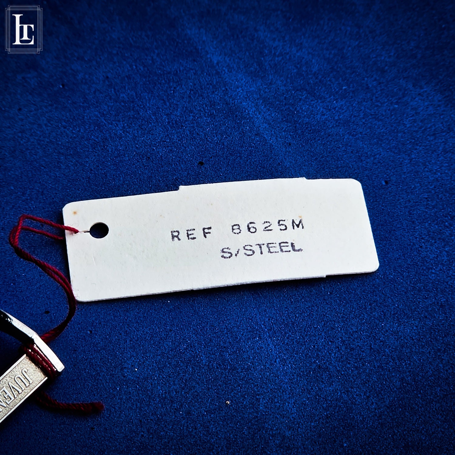 There are pieces that try to look vintage, and then there are pieces that are time capsules. This Juvenia ref. 8625M sits firmly in the second category. Preserved as new old stock, still carrying its original tag, it delivers that increasingly rare feeling of untouched history—sharp edges, full brushing, and a case that hasn’t been softened by time or polishing.