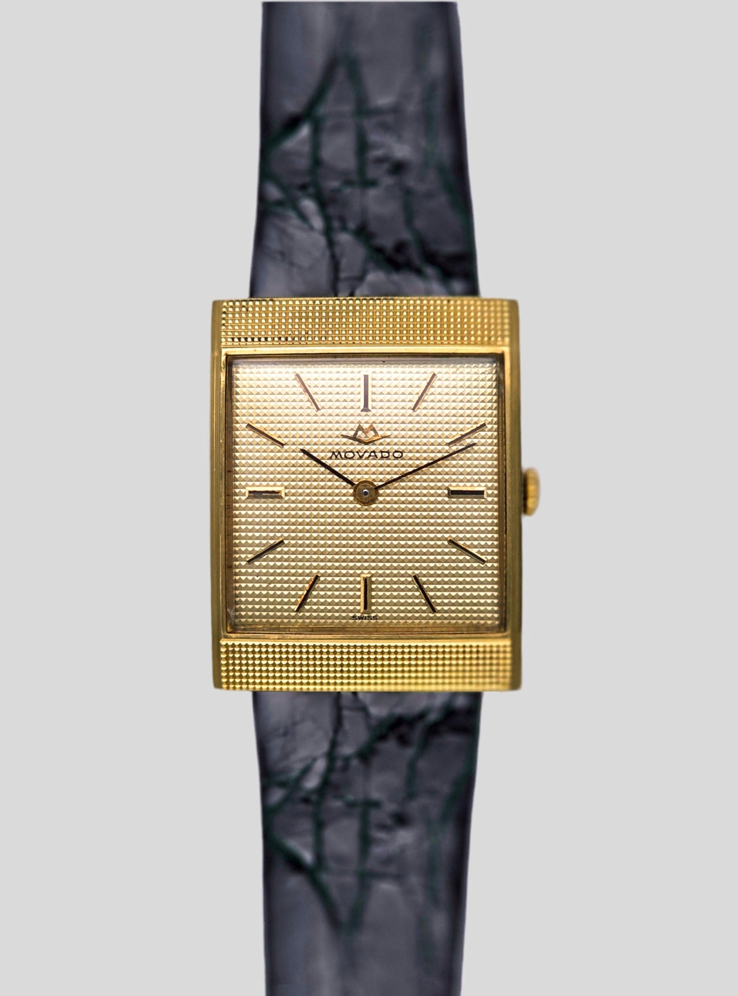 With its 26x33 mm proportions, this watch embodies the timeless charm of mid-century design — elegant, discreet, and perfectly balanced. A testament to Movado’s golden age, where every surface, every line, and every reflection spoke of artistry and precision, this piece stands as both a collector’s treasure and a sophisticated daily companion.