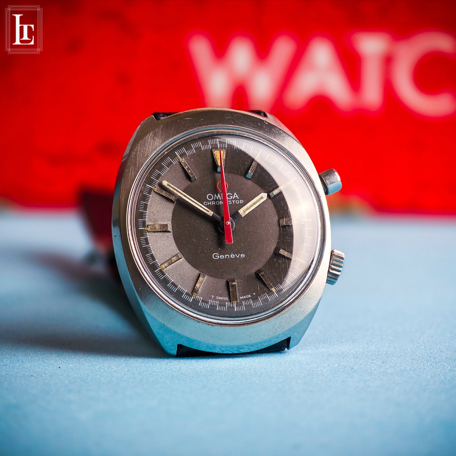 Introduced in 1966, the Omega Chronostop was a bold innovation in the world of chronographs. Unlike traditional chronographs, the Chronostop was designed for quick, precise timing of short intervals—perfect for motorists, athletes, and professionals on the go. By pressing and holding the pusher, the central seconds hand could be stopped and read, then instantly reset with a release—streamlined timing at the push of a button. This function, while simple, reflected Omega’s ingenuity in creating a tool watch that was both accessible and versatile.