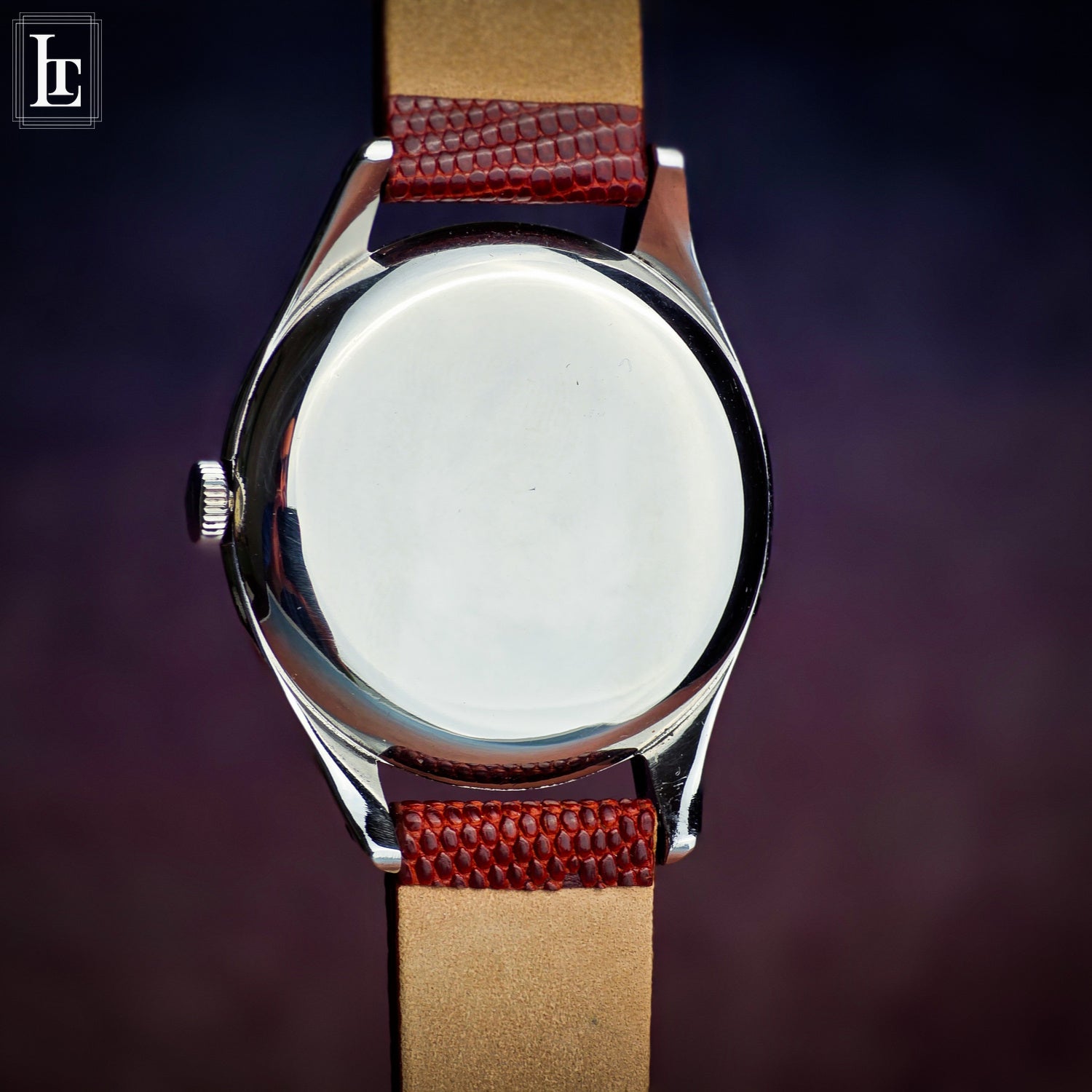 The Omega Oversize ref. 2505-10 is a watch that speaks directly to seasoned collectors and true vintage enthusiasts. Produced in 1951, it represents a bold and forward-thinking chapter in Omega’s history, at a time when wristwatches were typically much smaller. With its 38.5 mm stainless steel case, this model was genuinely “oversize” for the era—not as a stylistic experiment, but as a functional choice aimed at enhanced legibility and wrist presence. In today’s market, where larger vintage cases are increasingly appreciated, early Omega oversize references stand out as some of the most desirable and authentic options available.