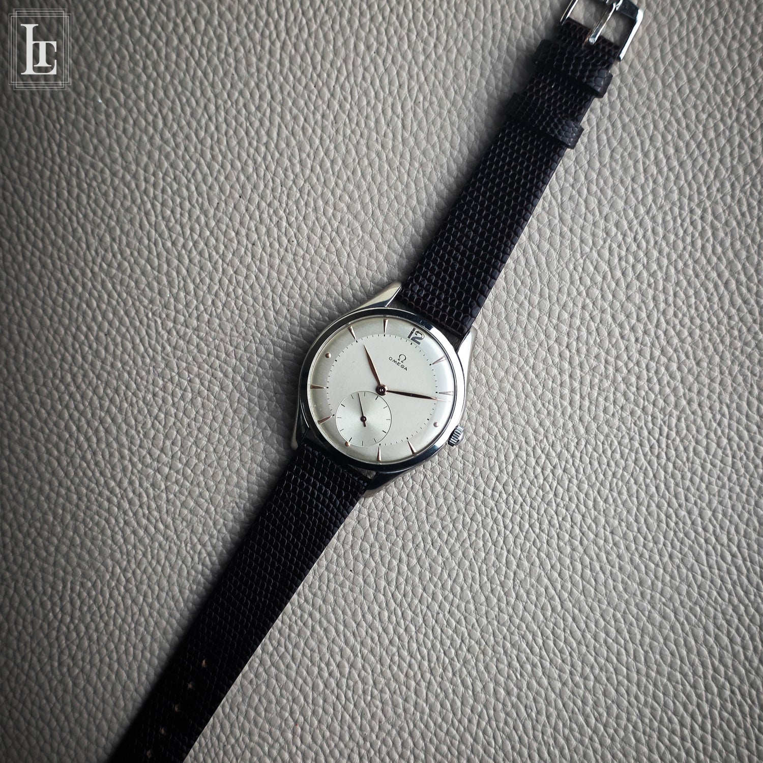 Powering the watch is Omega’s calibre 265, a manual-winding movement known for robustness, accuracy, and long-term serviceability. It reflects Omega’s post-war engineering philosophy: proven mechanics, built to last, with no compromises. Completing the ensemble is a black lizard strap paired with the original Omega steel buckle, a detail increasingly difficult to find and highly valued by collectors.