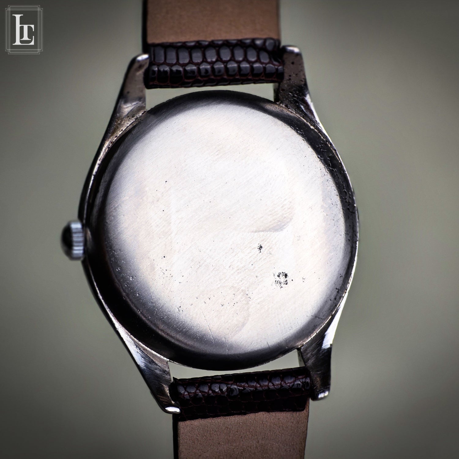 With its oversized 38 mm steel case, the 2505-4 was exceptionally large for its time, designed to offer superior readability without sacrificing balance on the wrist. The case lines are clean and purposeful, avoiding unnecessary ornamentation while retaining a strong, masculine presence that feels remarkably modern even today.