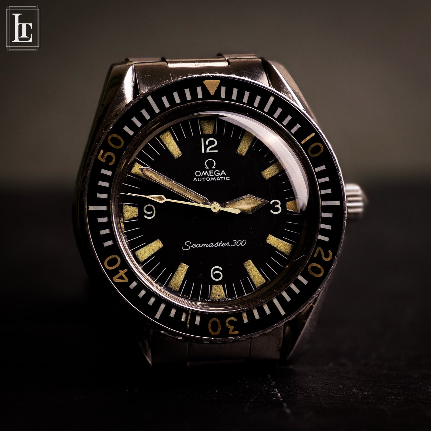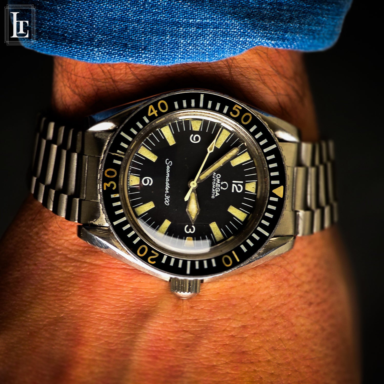 The bakelite bezel has an awesome patina, and with clear, well-defined numerals and minute scale. The dial remains clean, balanced, and extremely legible, staying true to the original purpose-built design that made the Seamaster 300 a benchmark among professional divers.