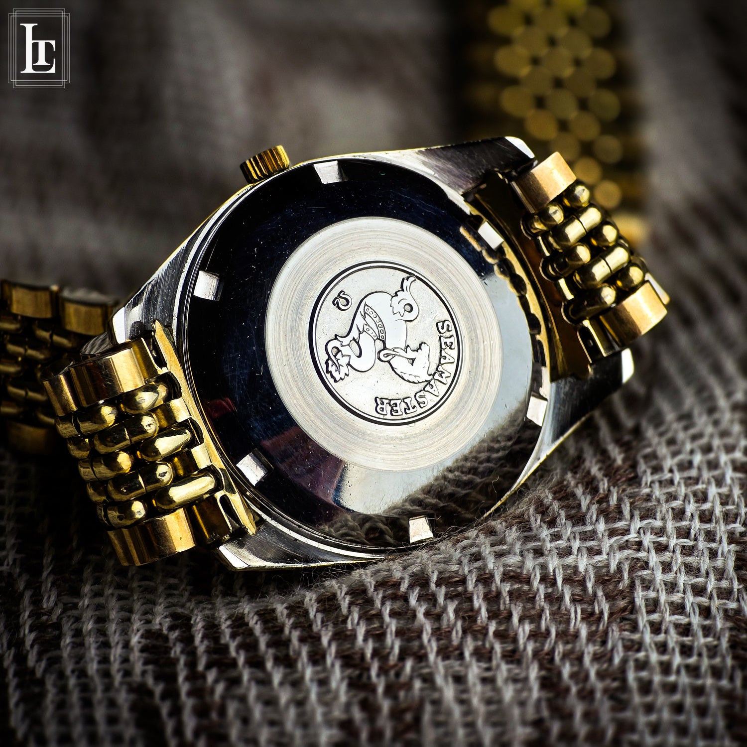 The steel case with gold-capped construction is emblematic of the period: solid, durable, yet visually warmer and more sophisticated than plain steel. The proportions are restrained and timeless, designed for everyday use without excess. On the wrist, the watch feels purposeful rather than decorative — exactly what Omega intended for the Seamaster family at the time.