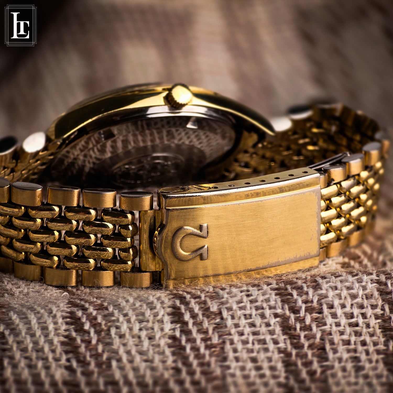 Paired with the original gold-capped Omega ref. 8220 bracelet, the watch retains a strong sense of coherence and authenticity. This is a Seamaster that hasn’t been reinvented or modernized — it has simply survived, carrying with it the quiet confidence of a well-engineered object from a golden era of Swiss watchmaking.