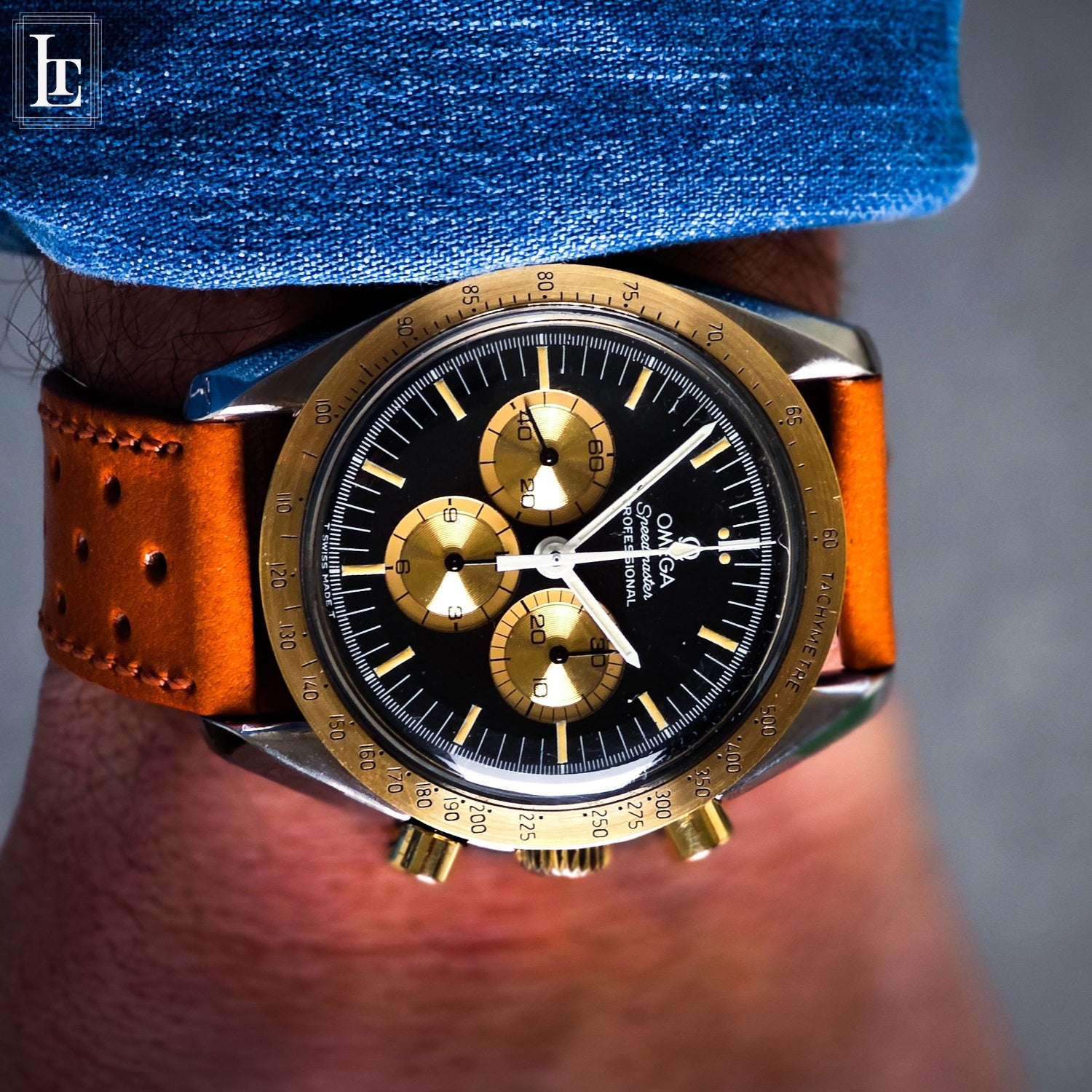 Serial 48.xxx.xxx, numbered 3xx/500 (MK1 specimen), it belongs to a niche within the Speedmaster universe that seasoned collectors immediately recognize. The classical 42mm asymmetrical case with twisted lugs preserves the professional DNA of the model, while the 18kt yellow gold bezel, gold pushers and crown elevate it into a more refined and assertive dimension.