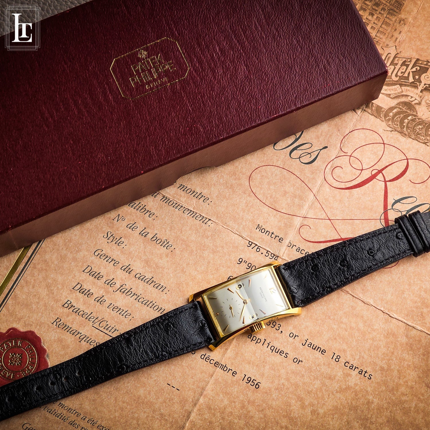 Accompanied by its original yellow-gold Patek Philippe pin buckle and an Extract from the Archives confirming production in 1955 and sale in December 1956, this watch stands as a rare and historically important example of mid-century Genevan creativity.