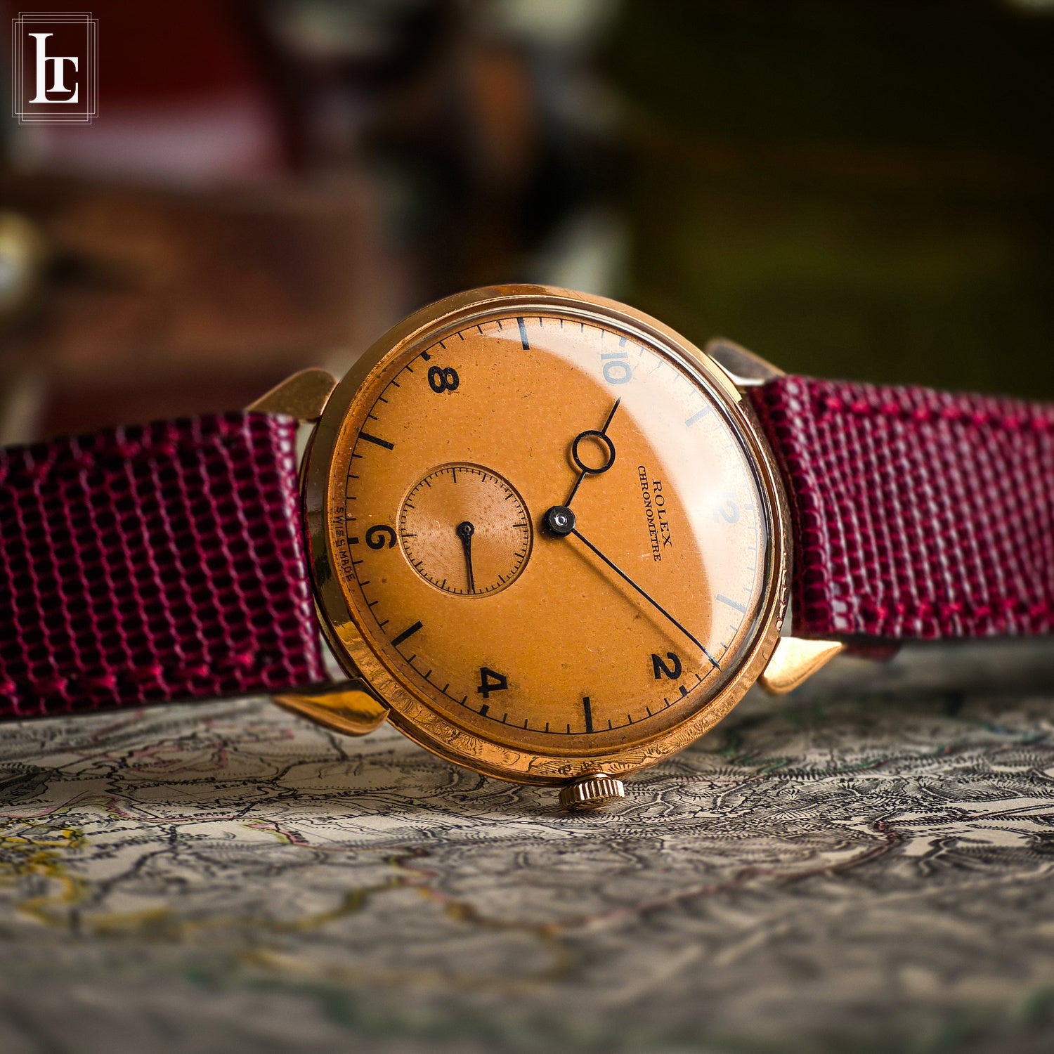 Completed by a red lizard strap, the watch feels exactly as it should: intimate, historic, and unmistakably rare. This is Rolex before mythology — when chronometry came first, and everything else followed.