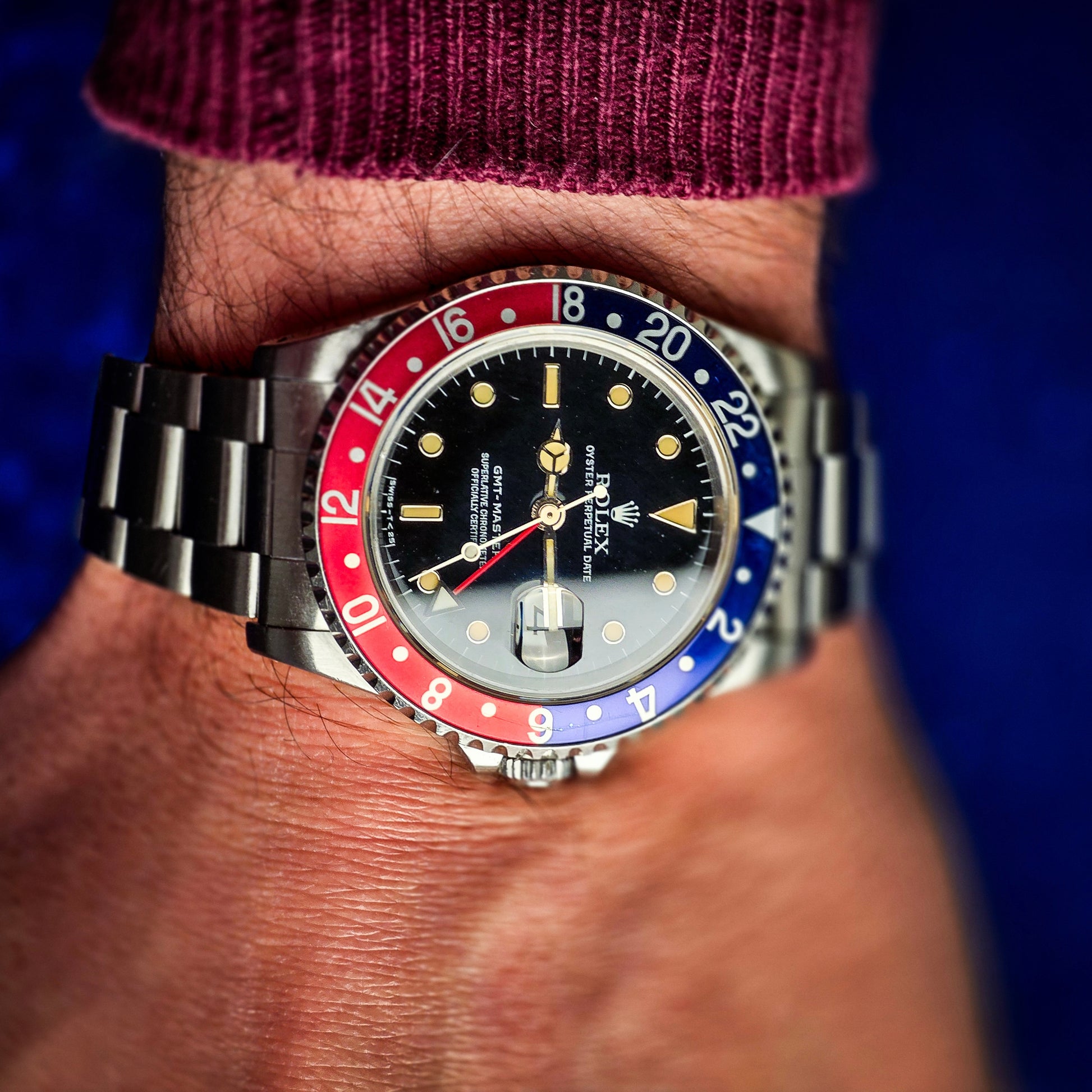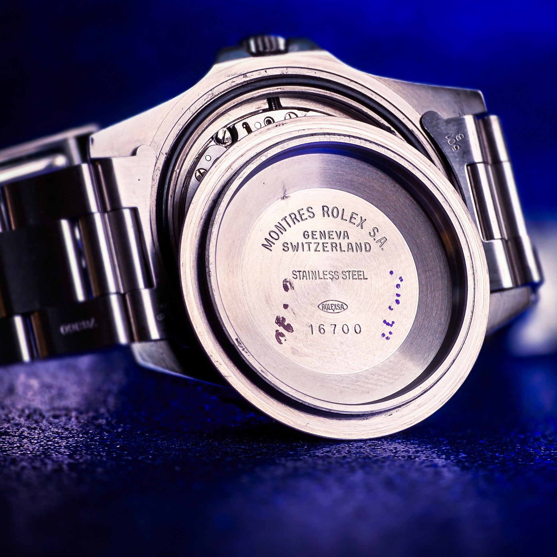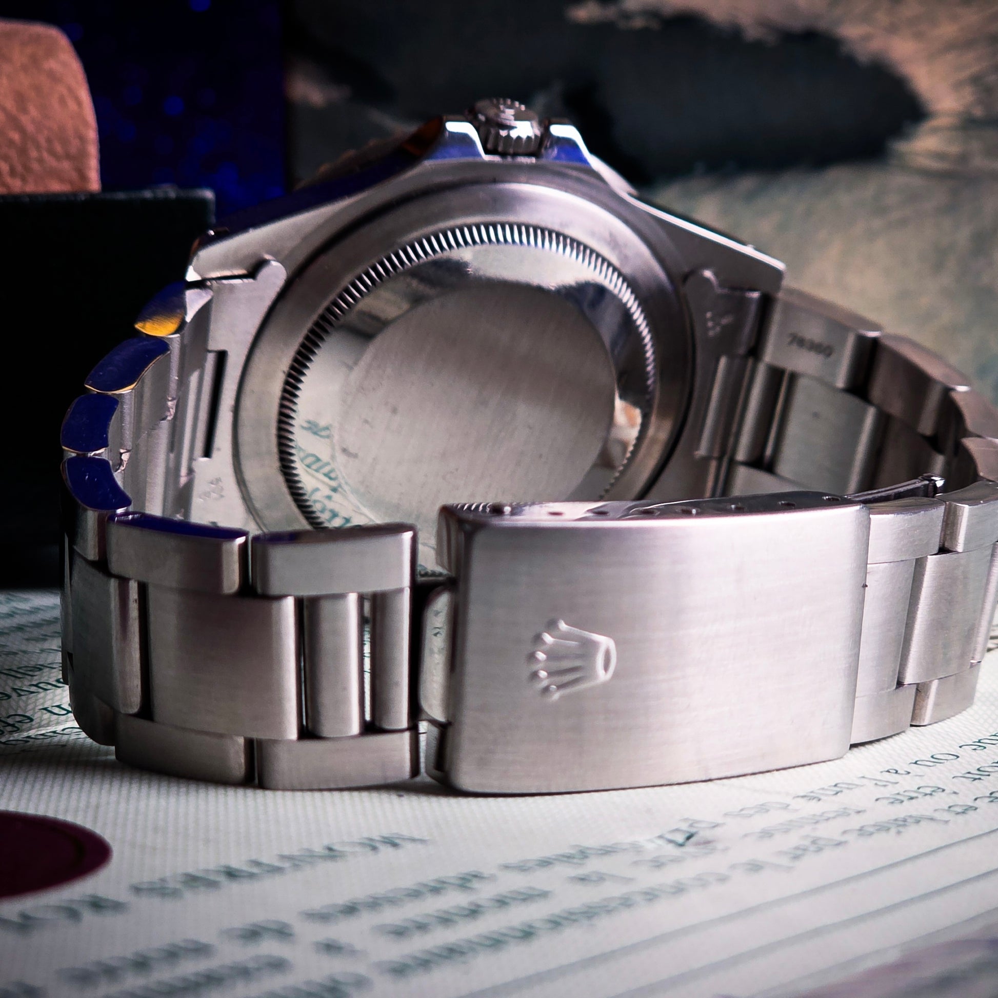 Born in the 1950s for Pan Am pilots, the Rolex GMT-Master was designed to display two time zones simultaneously and quickly became an icon of aviation and travel. The reference 16700, introduced at the end of the 1980s and discontinued in the late ’90s, represents the last evolution of the “classic” GMT-Master before the transition to the GMT-Master II. It preserves the pure design and simplicity of the original line while offering a robust and reliable movement.